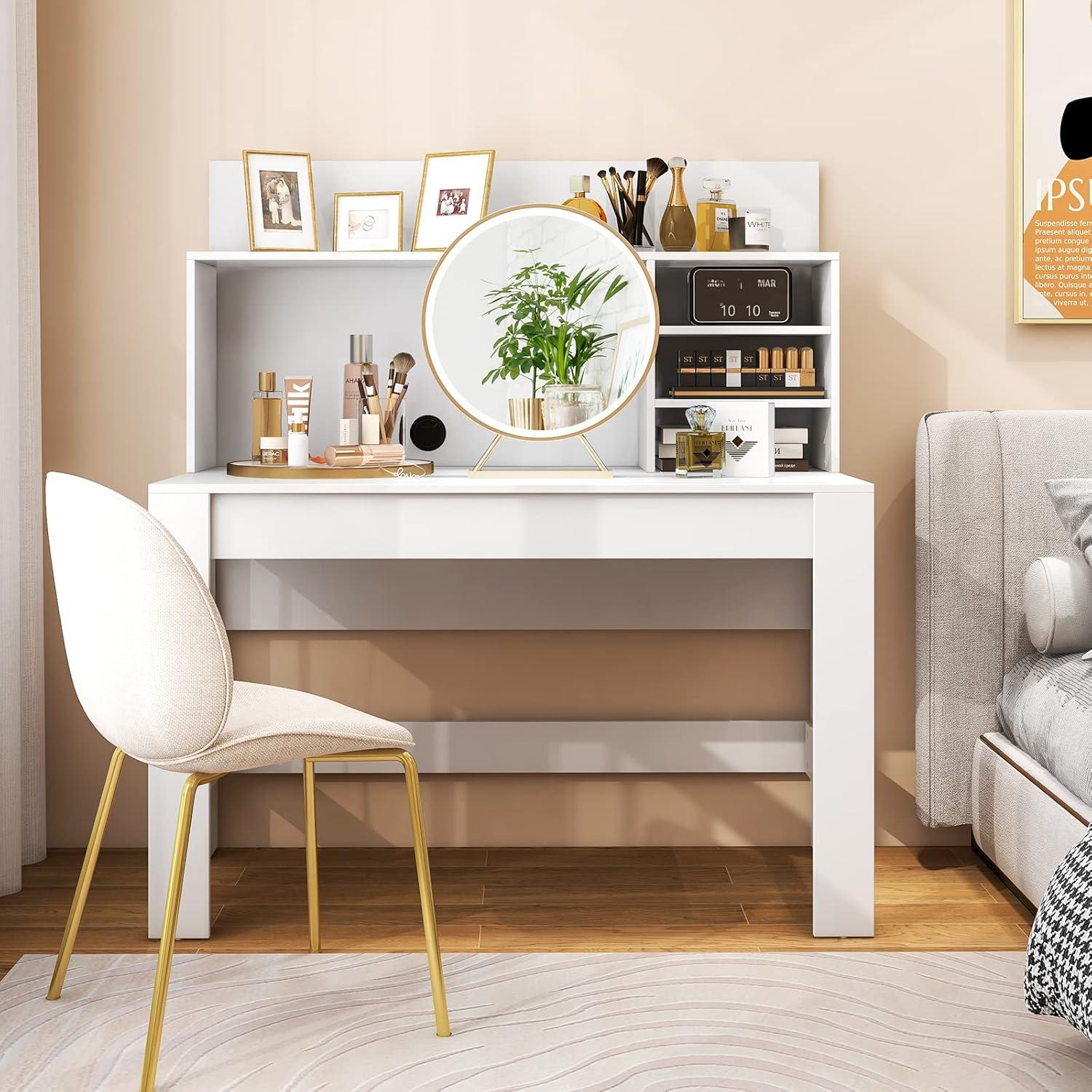 Easy Assembly & Maintenance: With step-by-step installation instructions and complete accessories, setting up this makeup vanity table should be a breeze for you. Meanwhile, the preppy desk's smooth and durable surface allows for effortless cleaning. We will also provide you with screw hole covers to ensure a clean and beautiful look.