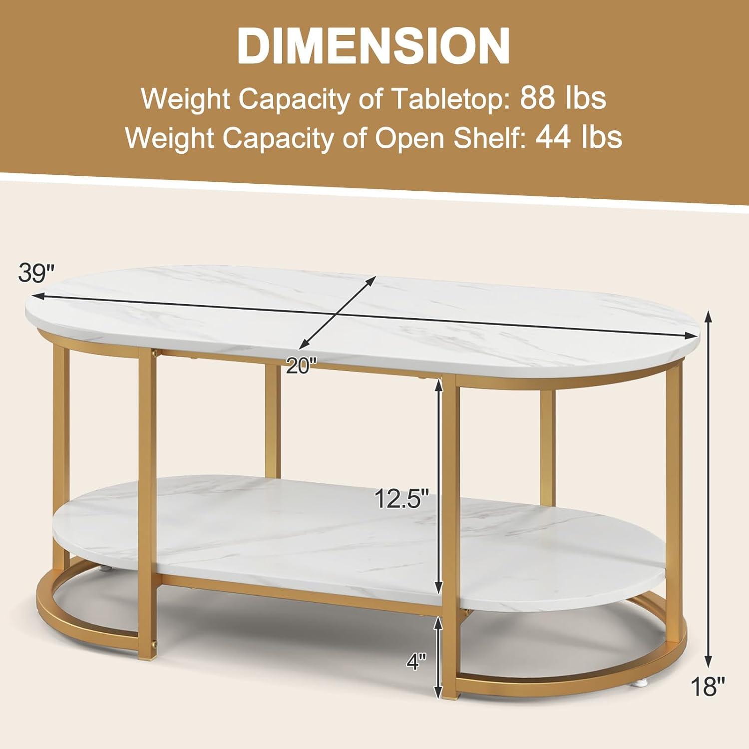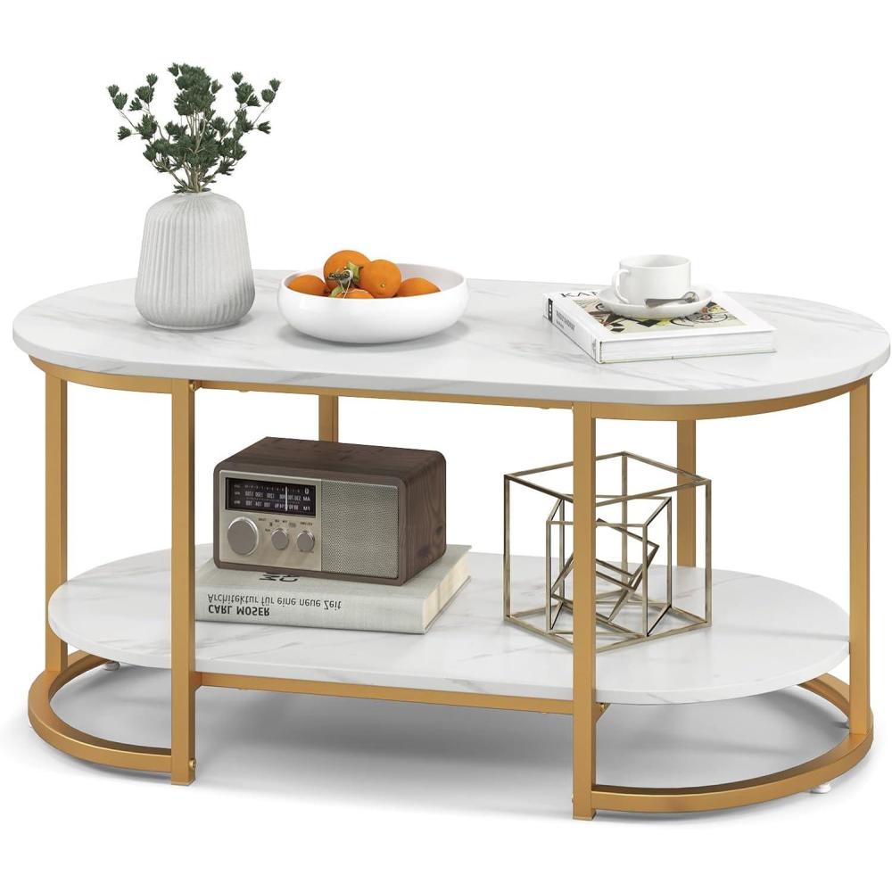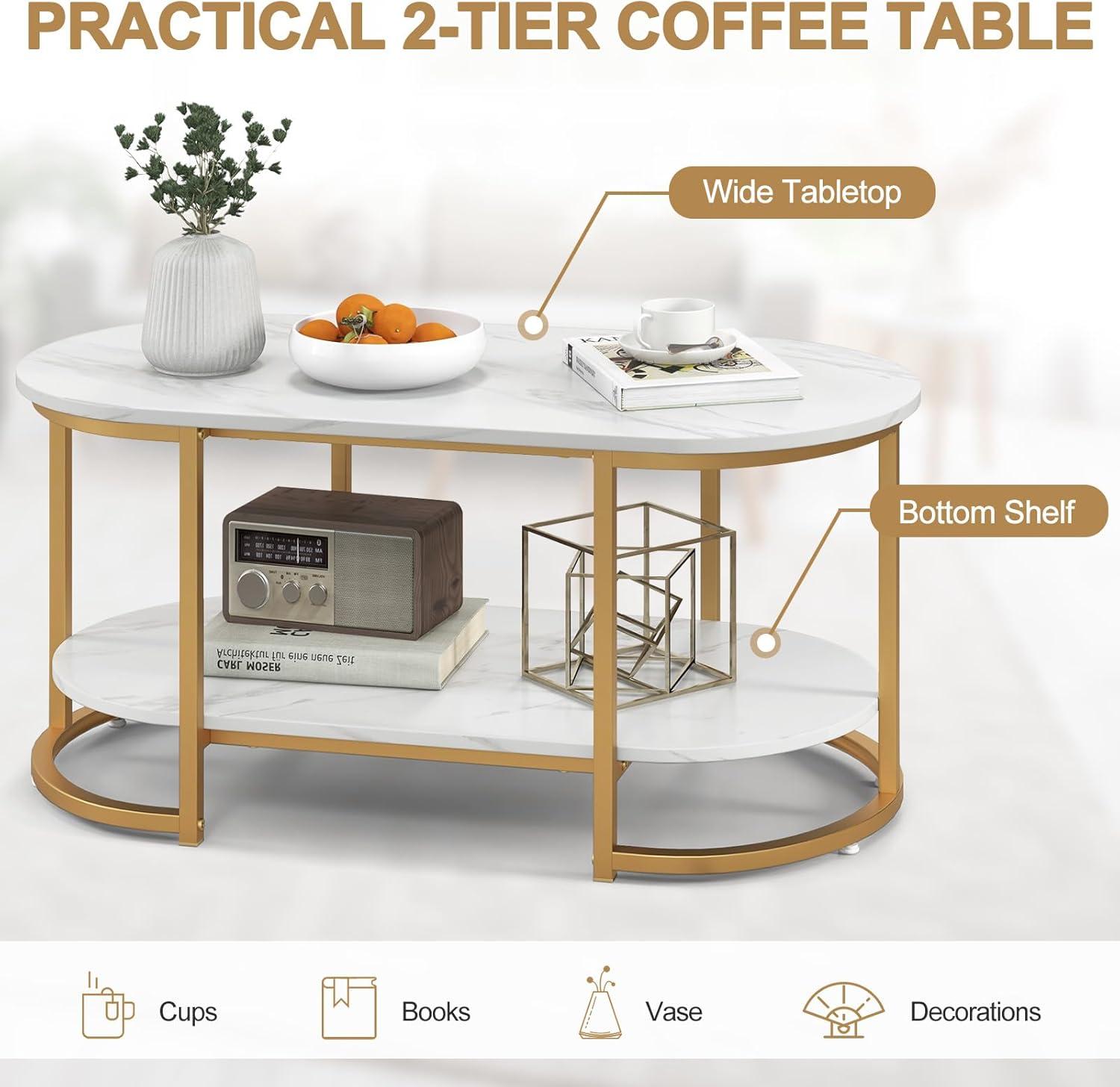 Luxury & Contemporary Style: Exquisite faux marble veneer features a high-end and elegant feel while golden lacquered metal frame takes the aesthetic beauty to next level. The white and gold coffee table is an aesthetically-pleasing piece for your home.