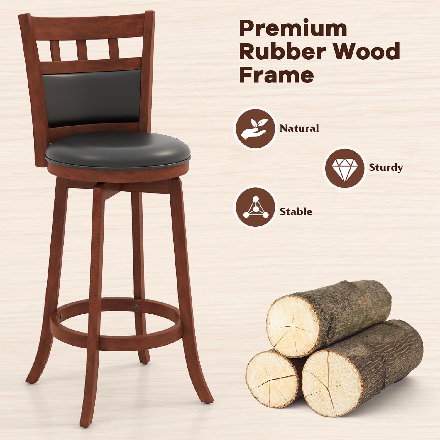 Giantex Wood Bar Stools Set of 2, 31″ Swivel Bar Height Barstools w/Back, Rubber Wood Frame, Padded Seat, Footrest, PVC Leather, Wooden Counter Bar Chairs for Kitchen Island, Restaurant, Espresso(2)