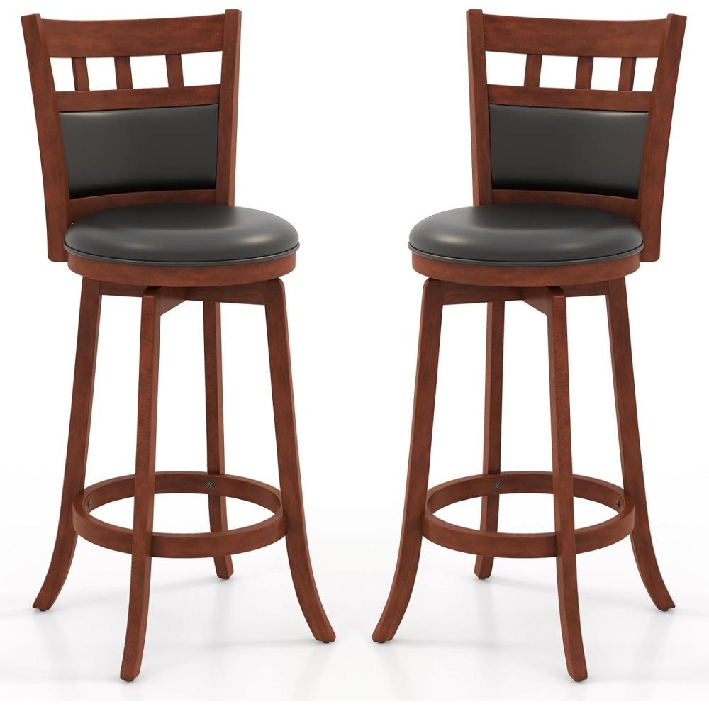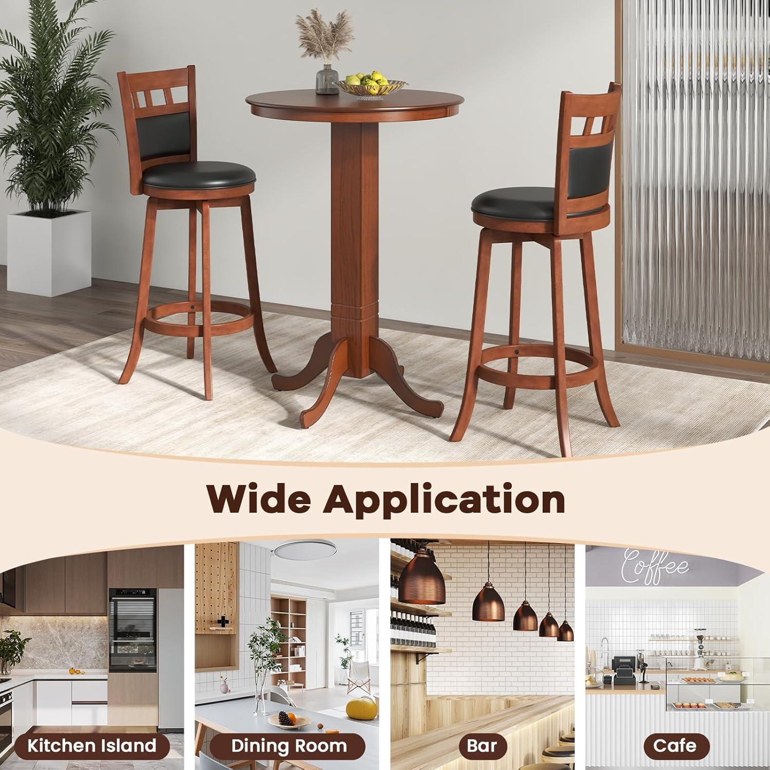 Giantex Wood Bar Stools Set of 2, 31″ Swivel Bar Height Barstools w/Back, Rubber Wood Frame, Padded Seat, Footrest, PVC Leather, Wooden Counter Bar Chairs for Kitchen Island, Restaurant, Espresso(1)