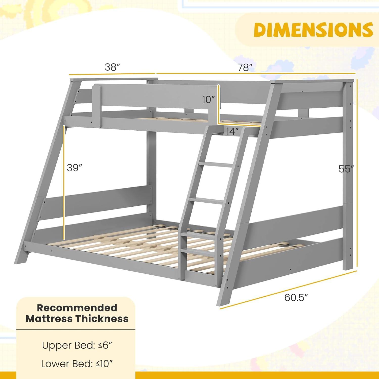 This twin over full low bunk bed enhances independence and boosts confidence as your little ones easily hop in and out. Moreover, this convertible bunk bed can be separated into 2 beds when kids grow up and want their own space. Made from solid wood for stability and durability, this bunk bed is built to safely accommodate both children and adults. Besides, the plywood slats for mattress support across both levels, eliminating the need for box springs and providing a firm foundation. The integrated ladder offers flexibility in placement and easy access to the top bunk. The full-length guardrails on the upper bunk also offer added safety. You little ones will love to possess their own-sized beds!