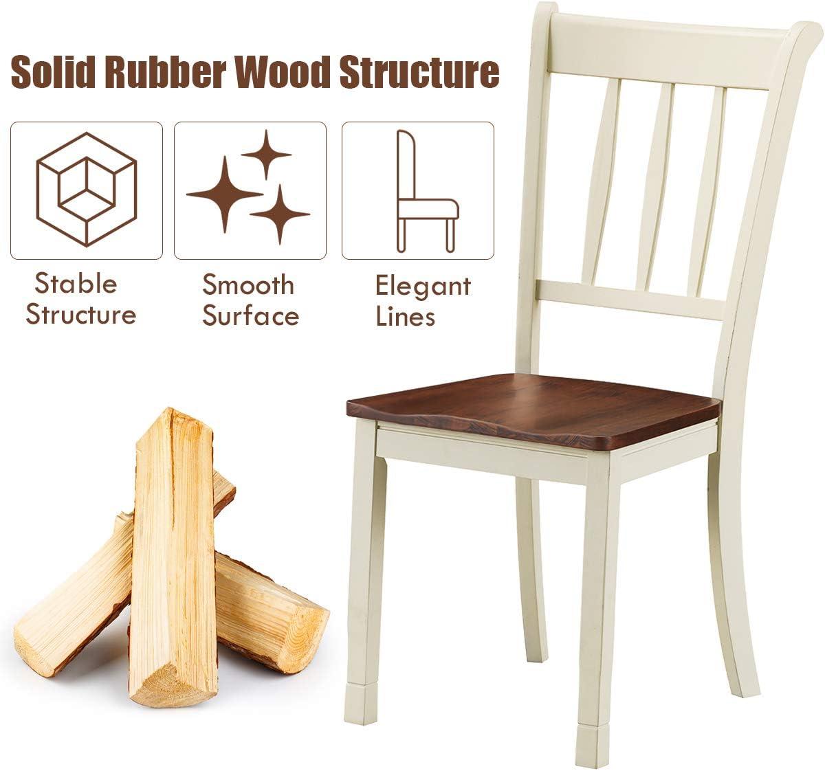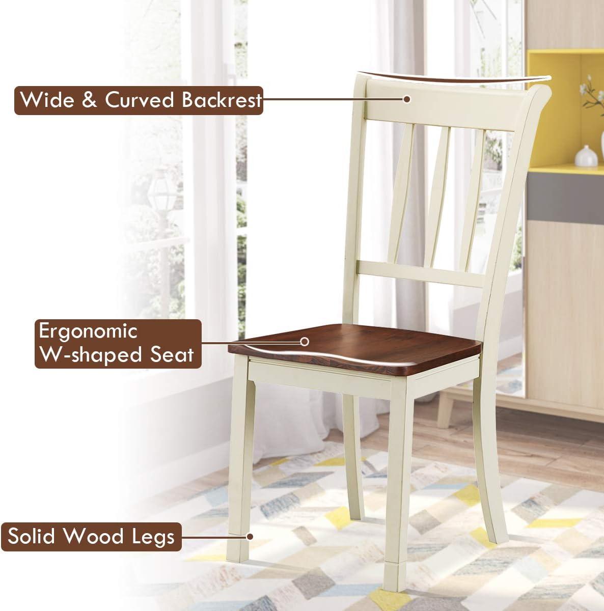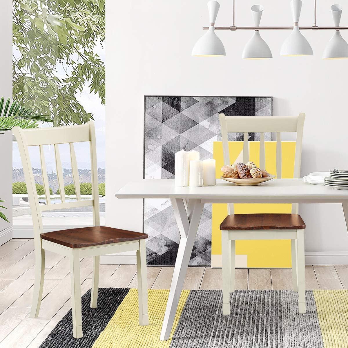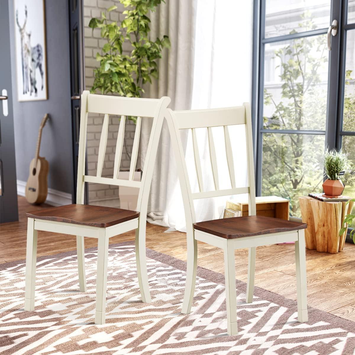Giantex Wood Dining Chairs Set of 2, Armless Kitchen Chairs w/Solid Rubber Wood Frame, Easy to Assemble Dining Side Chair, Farmhouse Dining Room Chairs(Ivory+brown)