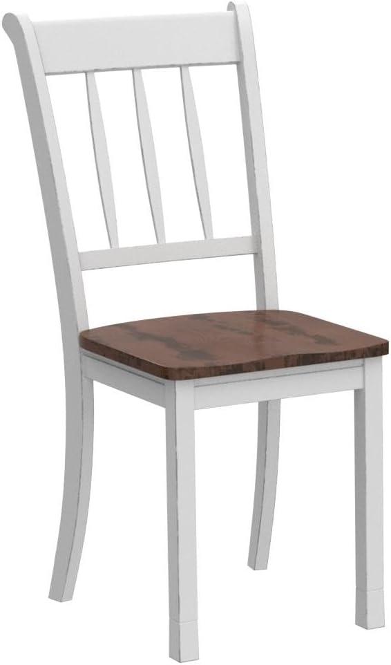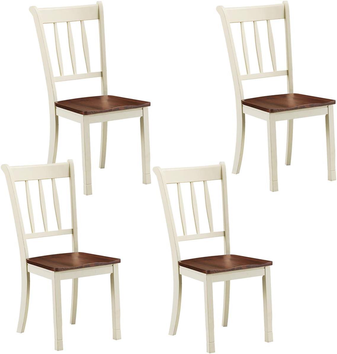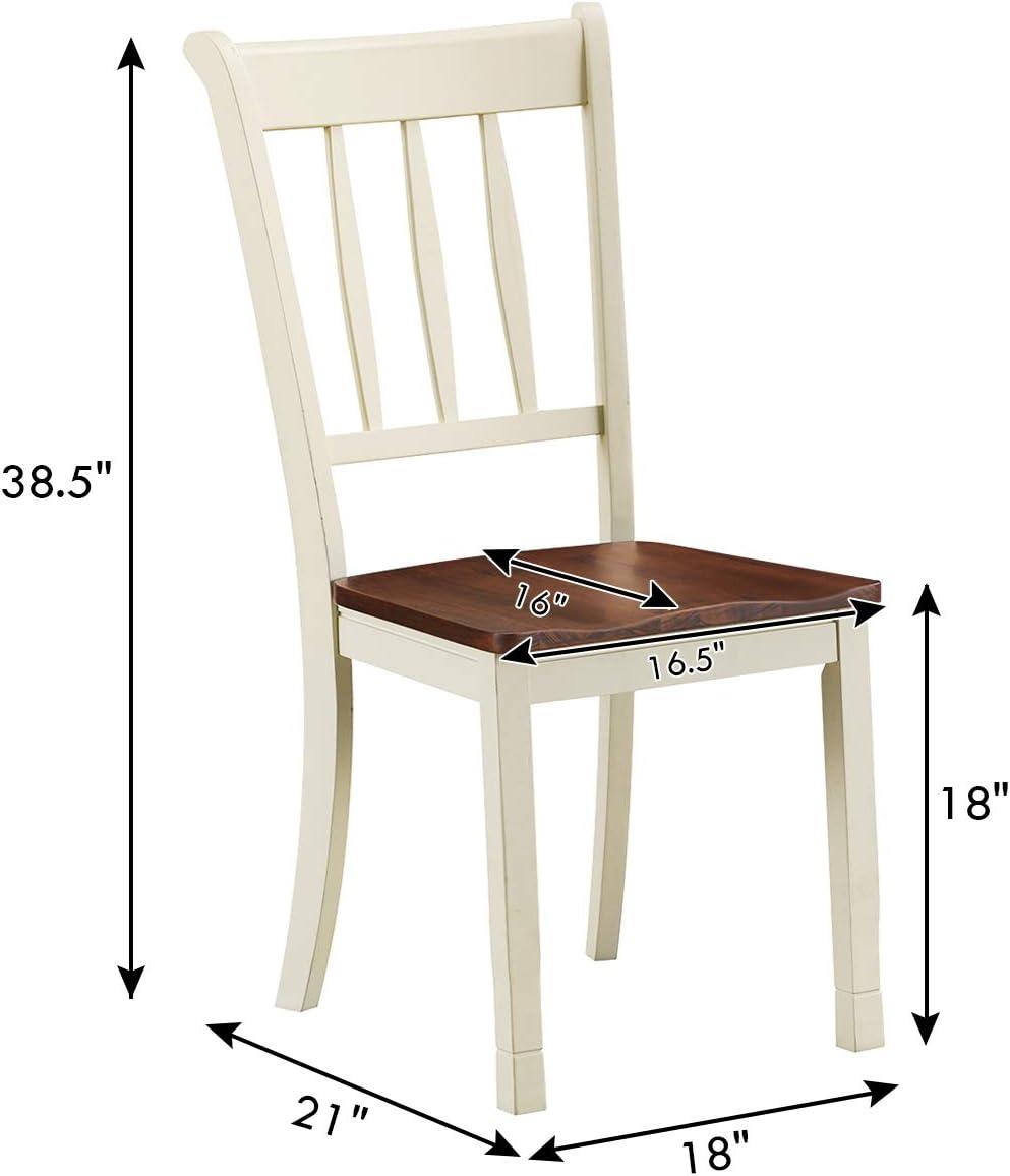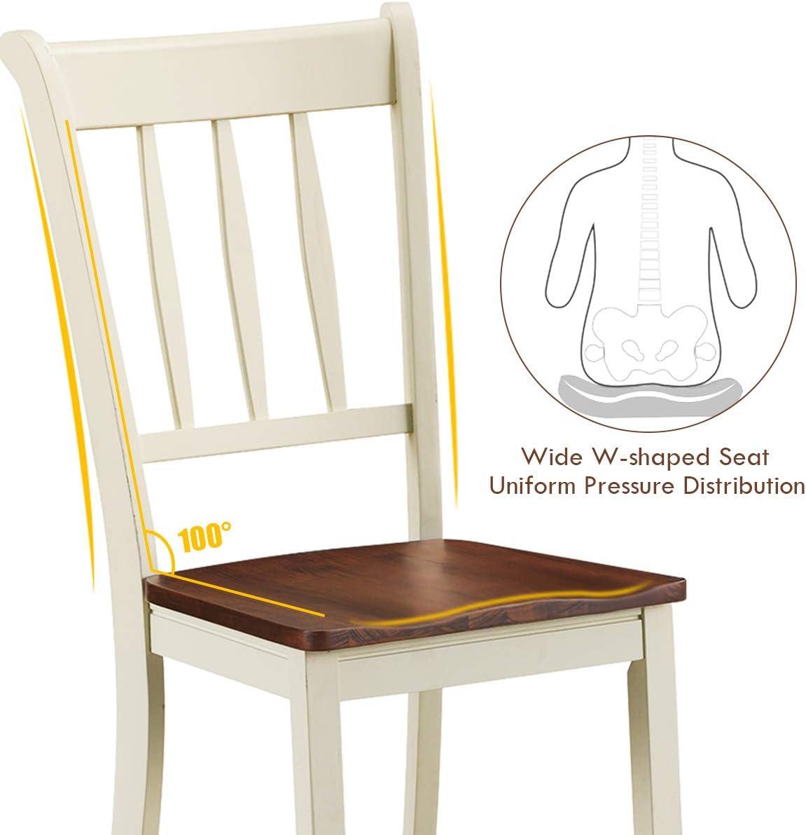 Giantex Wood Dining Chairs Set of 2, Armless Kitchen Chairs w/Solid Rubber Wood Frame, Easy to Assemble Dining Side Chair, Farmhouse Dining Room Chairs(Ivory+brown)