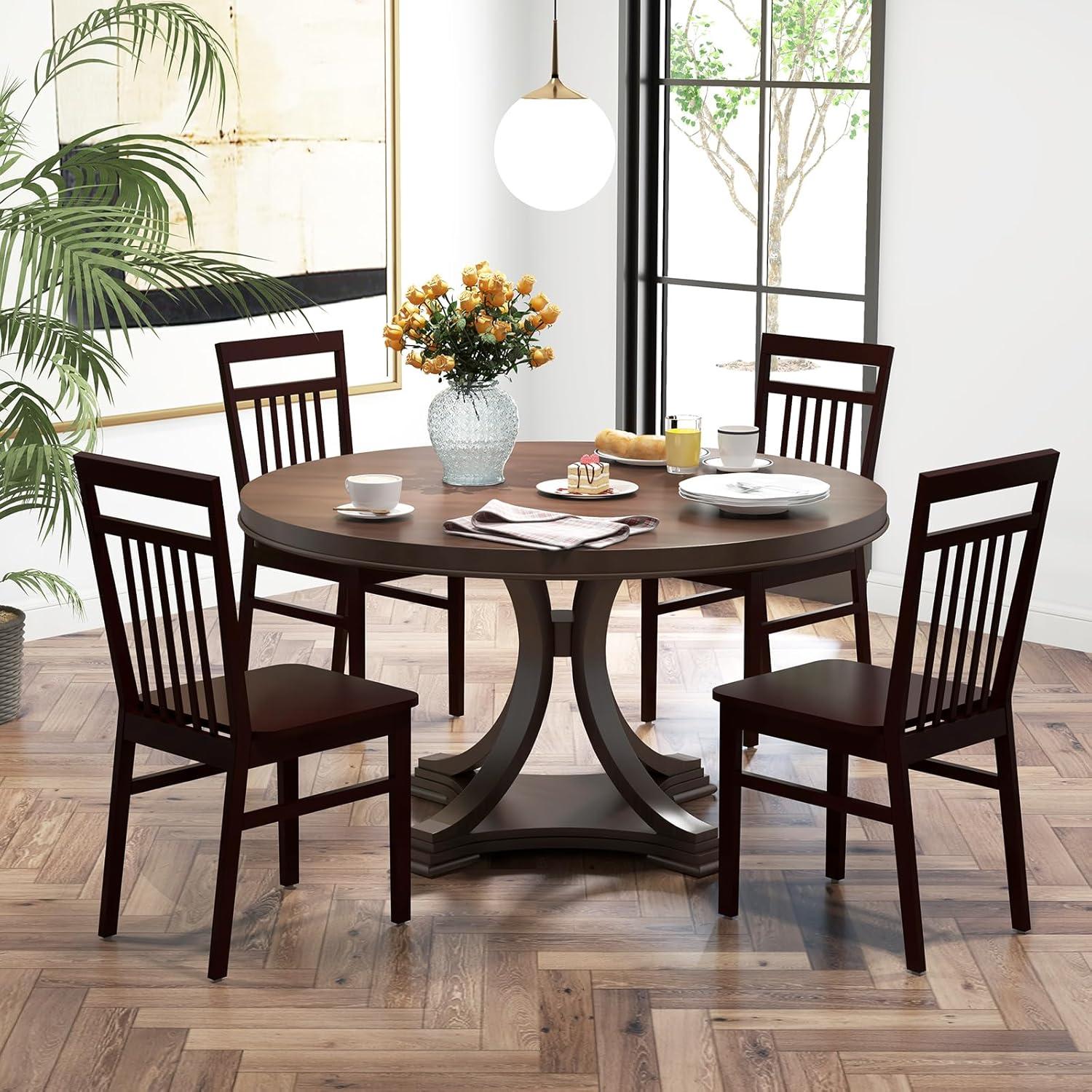 Giantex Wood Dining Chairs Set of 2, Kitchen Chairs with Solid Wood Frame, Armless Wooden Dining Side Chairs with Non-Slip Foot Pads, Farmhouse Slat Back Dining Room Chair, Walnut(Brown)