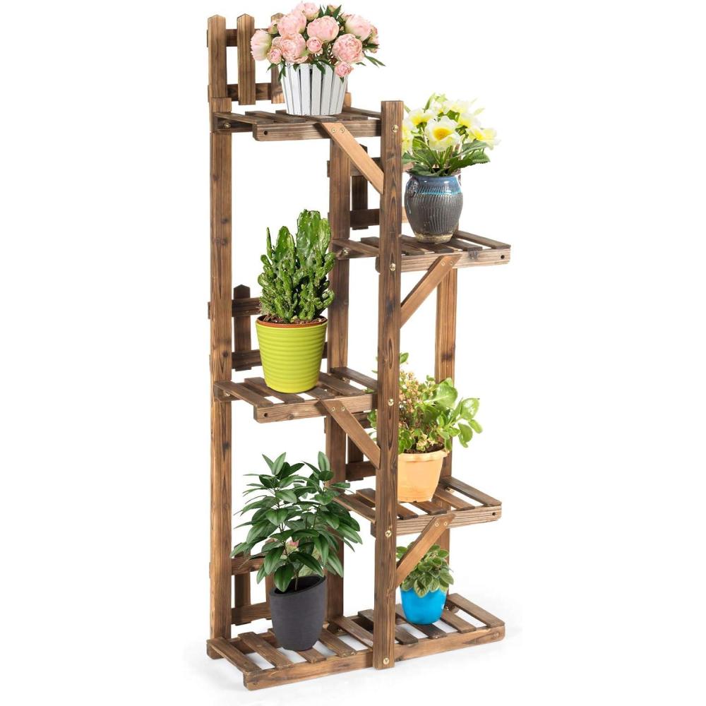imageGiantex Wood Plant Stand Rack 5 Tier 6 Potted Multiple Plant Stand Flower Pots Holder Display Shelf Rack Planter Indoor Outdoor for Garden Corner Balcony Patio Living Room
