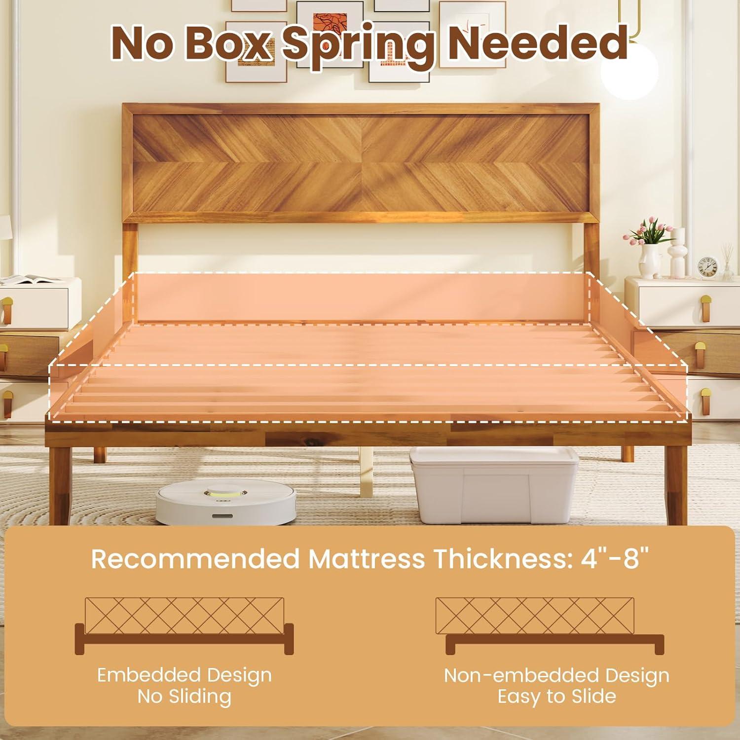 Solid Wood Construction: Crafted from high-quality acacia wood, this twin size bed ensures robust construction and boasts weight capacity up to 550 lbs. Additionally, the sturdy plywood slats offer reliable mattress foundation without requiring a box spring.