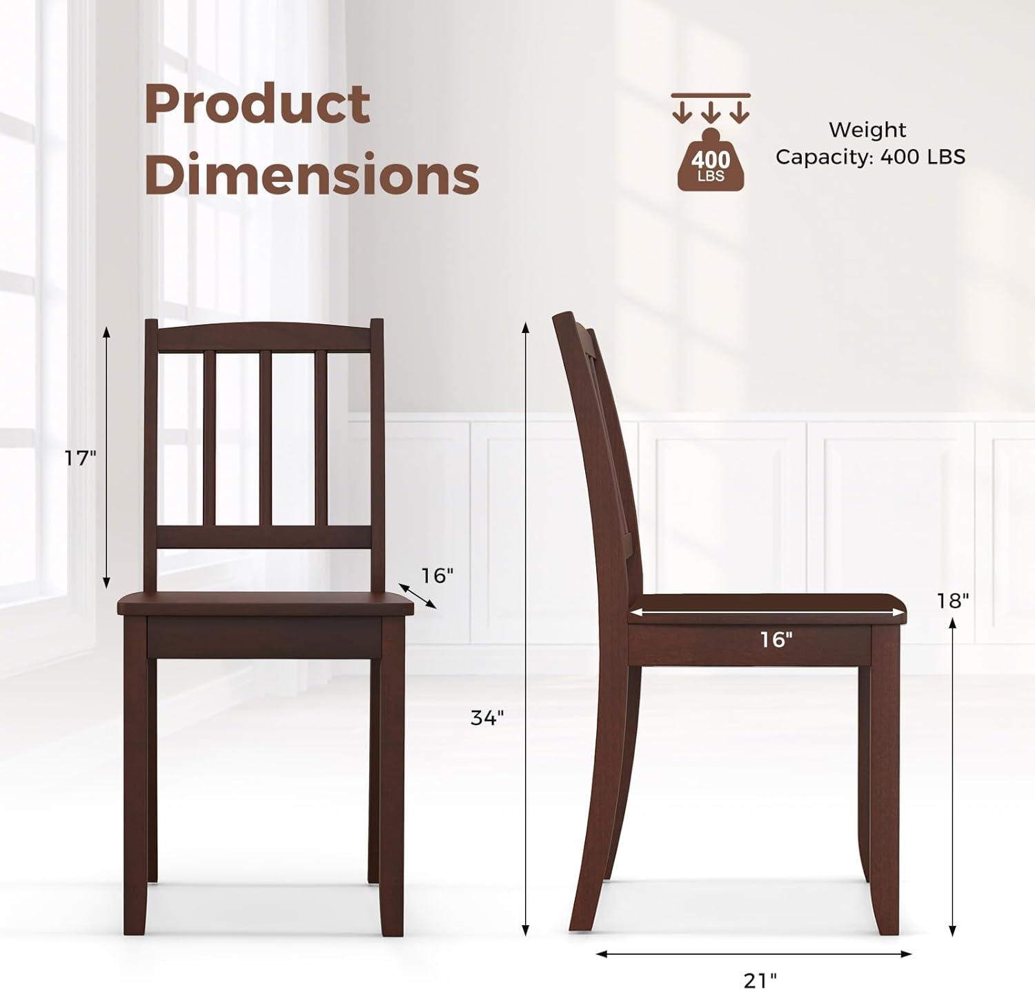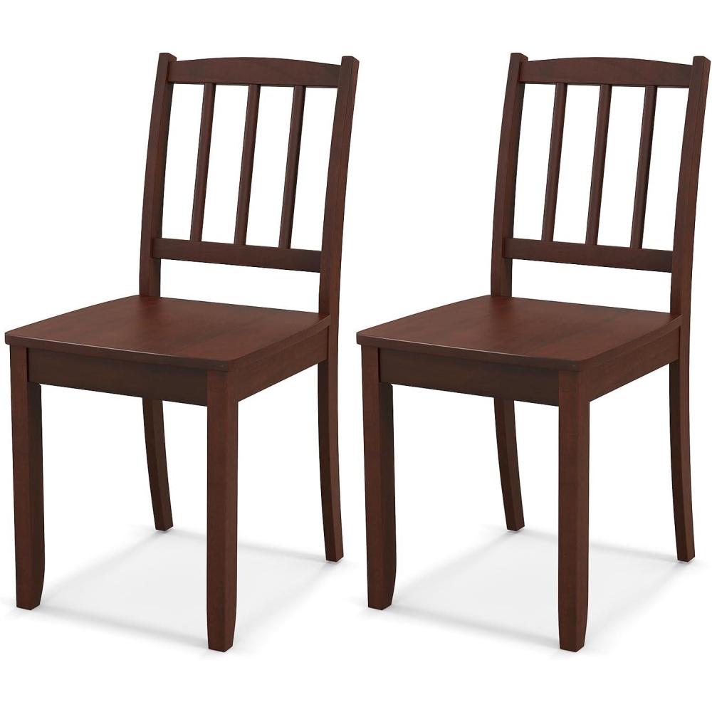 Giantex Wooden Dining Chairs Set of 2, Modern Kitchen Chairs w/Rubber Wood Legs & Curved Backrest, Ladder Back Diner Chairs, Farmhouse Side Chairs for Study, Dining Room, Load 400 LBS, White(Brown)