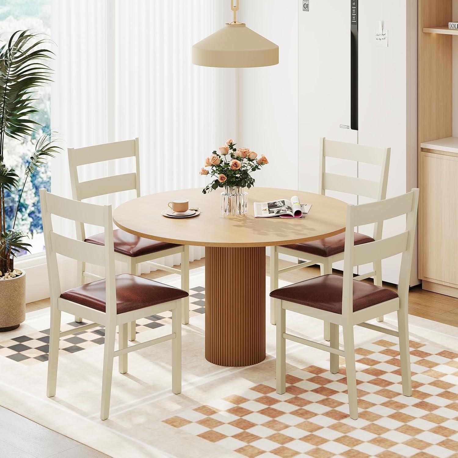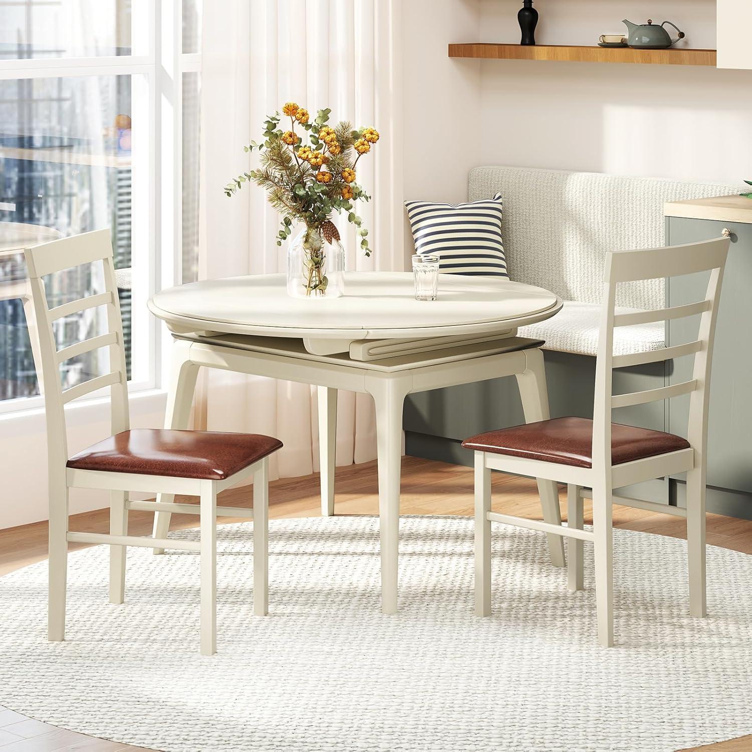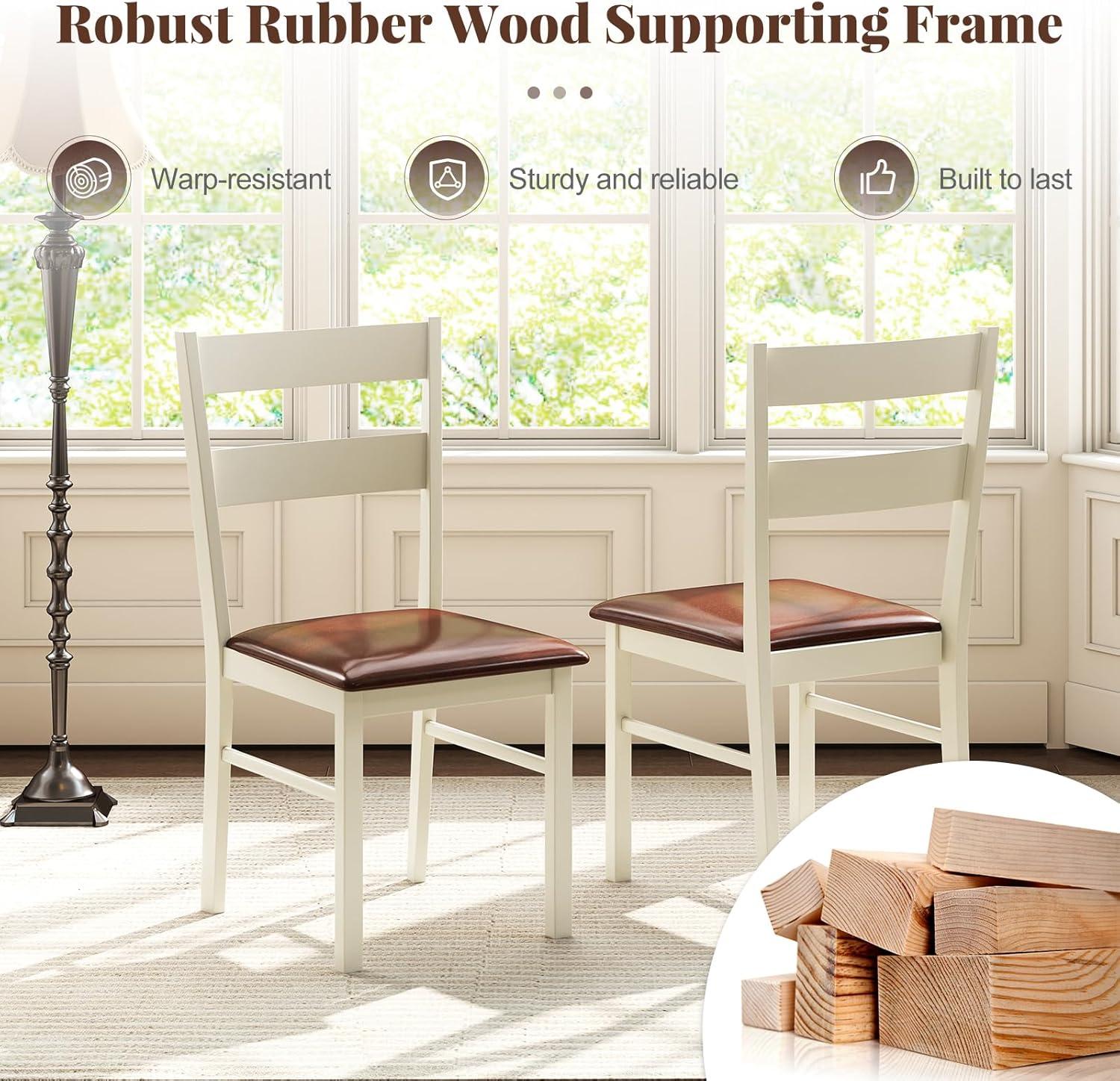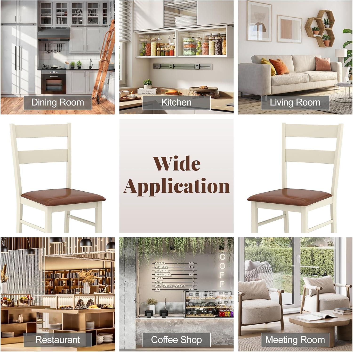 This wooden dining chair set is meticulously crafted with robust rubber wood frames, ensuring a stable and reliable seating solution for everyday use. Experience comfort tailored to your body with these chairs’ ergonomically curved backrests and soft padded seat cushions, reducing fatigue from prolonged sitting, perfect for enjoying leisurely meals or long conversations. The luxurious PU leather upholstery not only adds a touch of sophistication but also offers easy maintenance, making clean-up a breeze. Whether used in a traditional dining room setting, a contemporary office environment, or as accent chairs in a living room, these farmhouse dining chairs effortlessly blend in and add a touch of elegance to any space.
