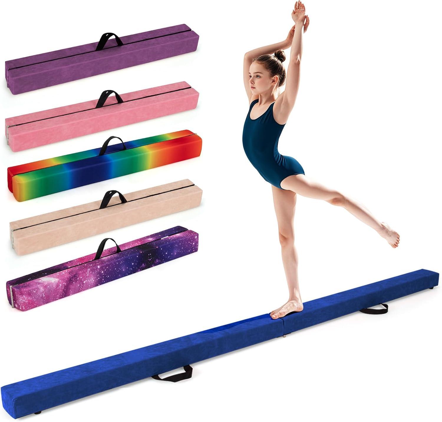 Giantex 8FT Balance Beam, Folding Gymnastics Beam w/Carry Handles, Non Slip Rubber Base for Kids, Floor Gymnastics Beam for Training, Practice & Professional Home Exercise (Rainbow)